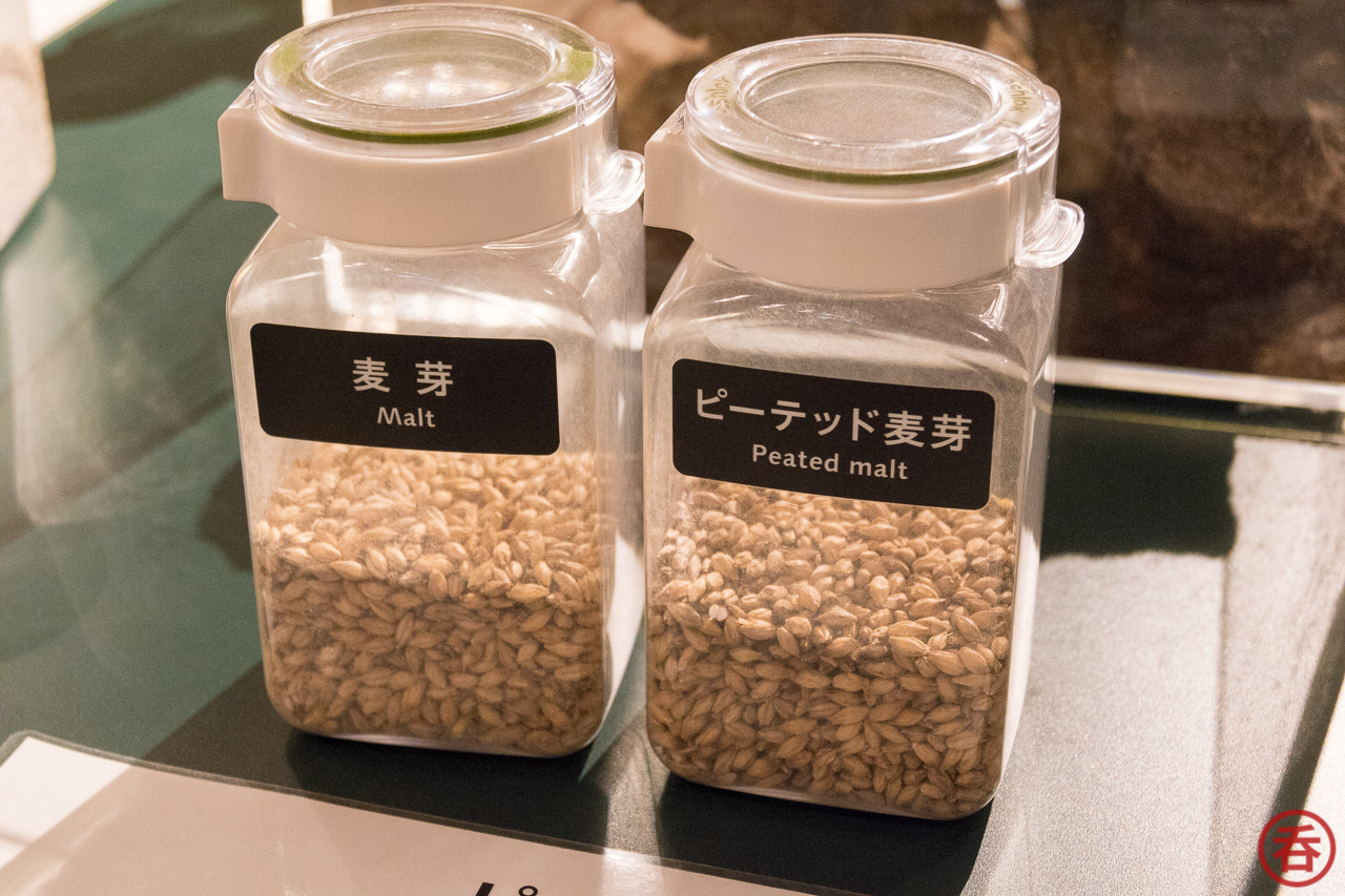 Audio guide in hand, the paid tour begins with a quick rundown of the schedule. After that there’s a short walk over to the fermentation and distillation building. Here there’s first a brief overview of whisky making with some samples of non-peated and peated malt, as well as the peat itself.