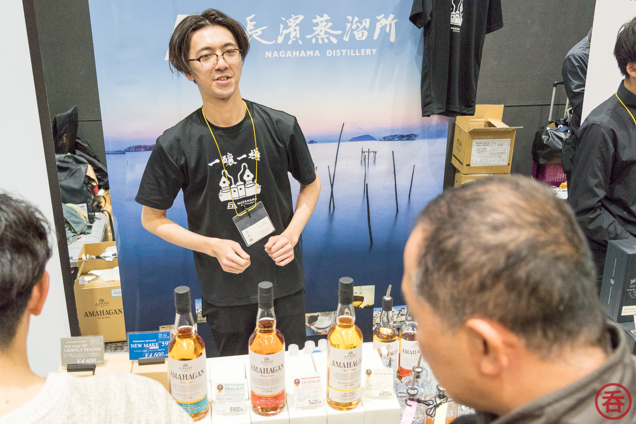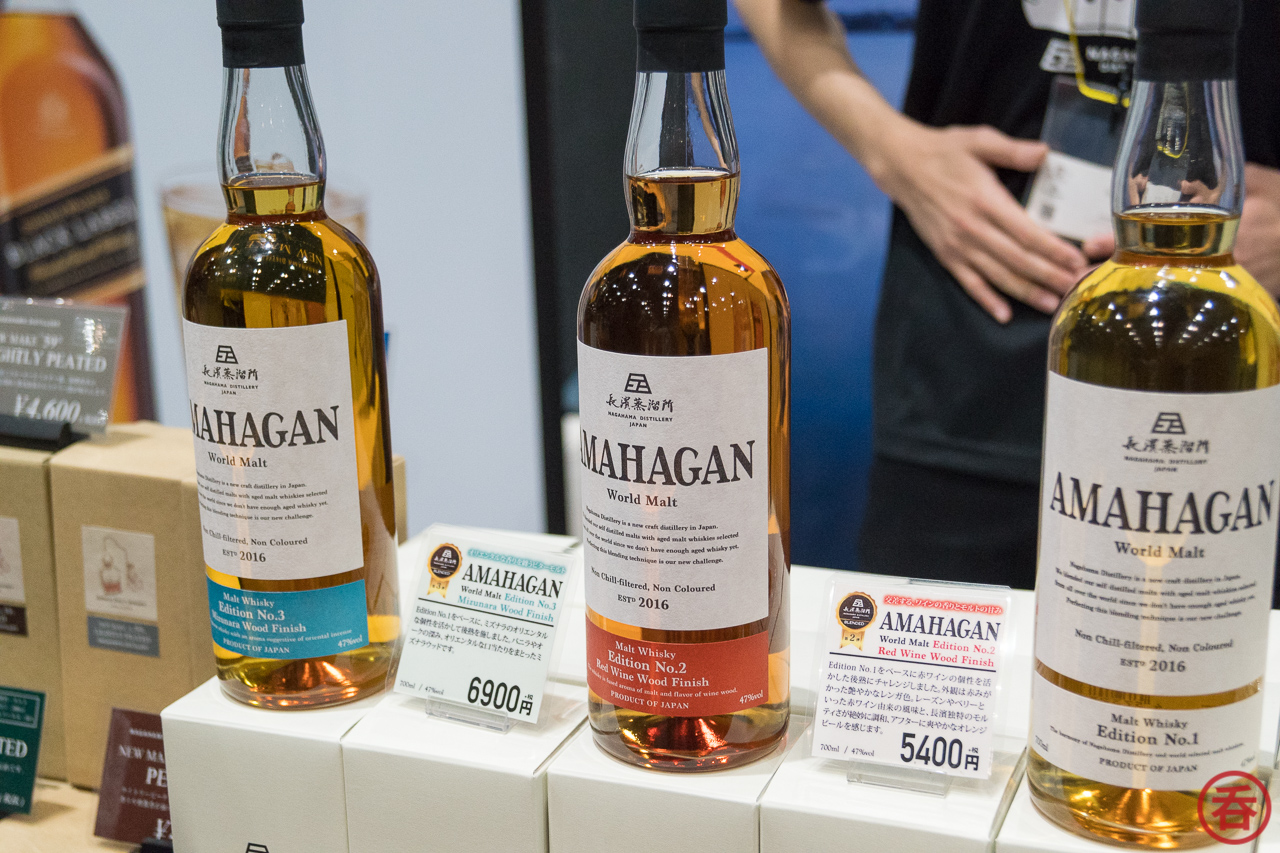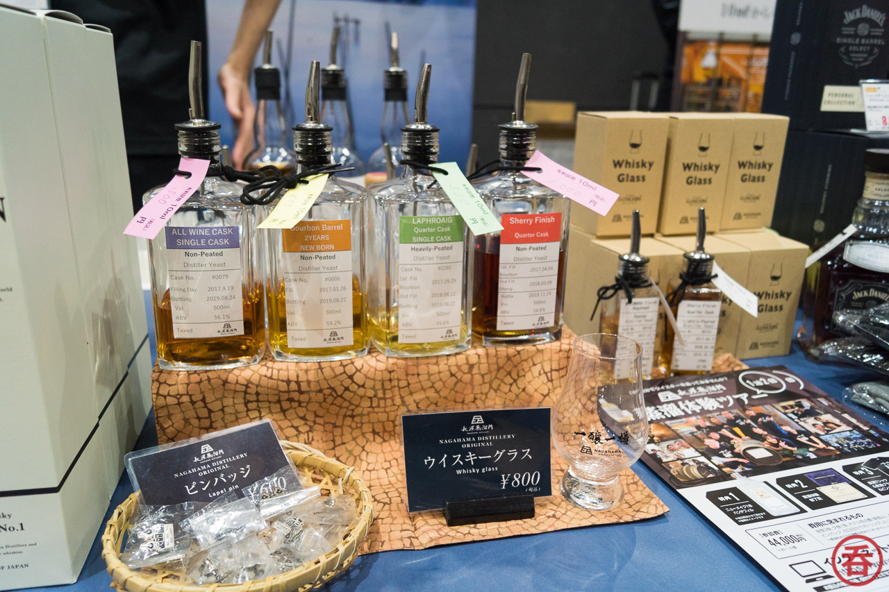 Highlights from Nagahama included three single casks: a 23-month wine cask, 2.5 year bourbon barrel, and a 23-month Laphroaig heavily peated quarter cask. There was also 11 month bourbon/20 month sherry cask, bottled mere days before the festival! The full Amahagan lineup as well.