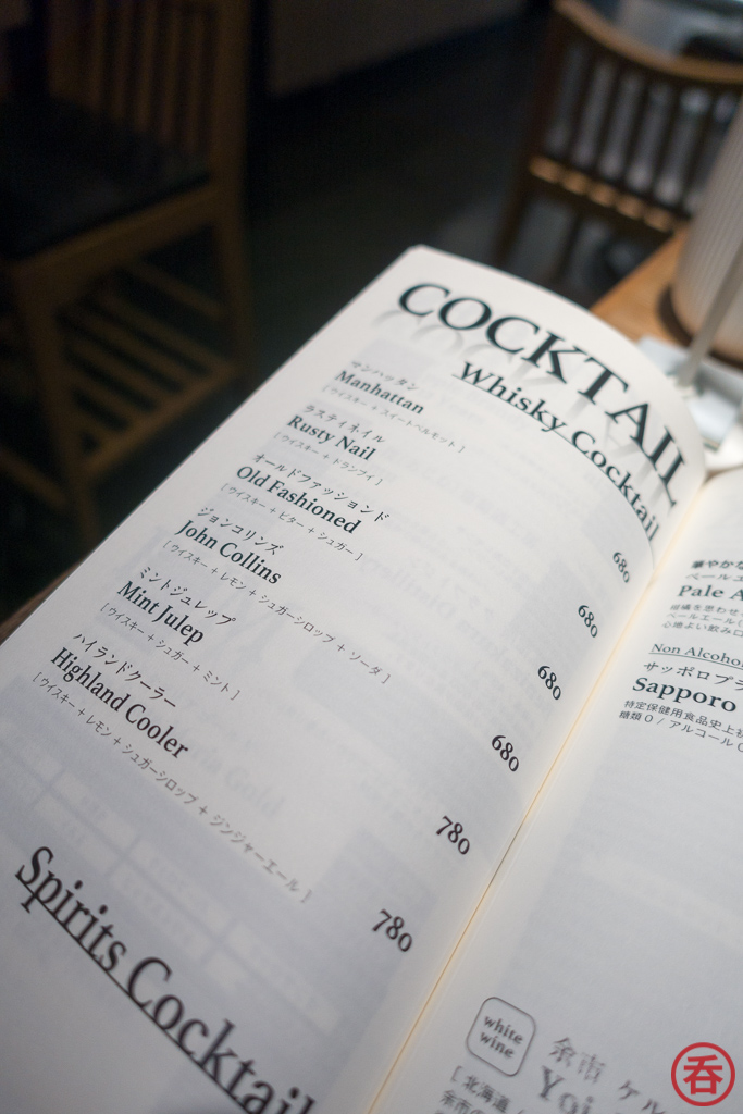 The menu features a handful of whisky and non-whisky cocktails as well. What other bars in Tokyo will serve you a Rusty Nail at 9AM for 680 yen? None of them!
