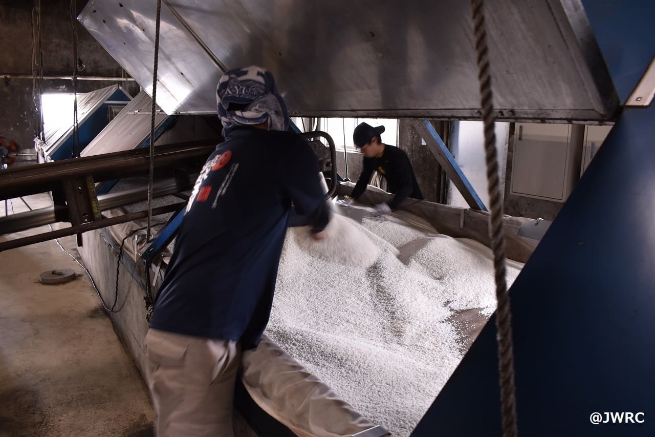 Whisky uses unprocessed barley with its hull, while barley shochu uses pearled barley. The same is true of rice in shochu, which of course looks completely different from malted barley in whisky. The hull serves an important role in whisky, but in shochu, the koji won’t attach to the hulls.