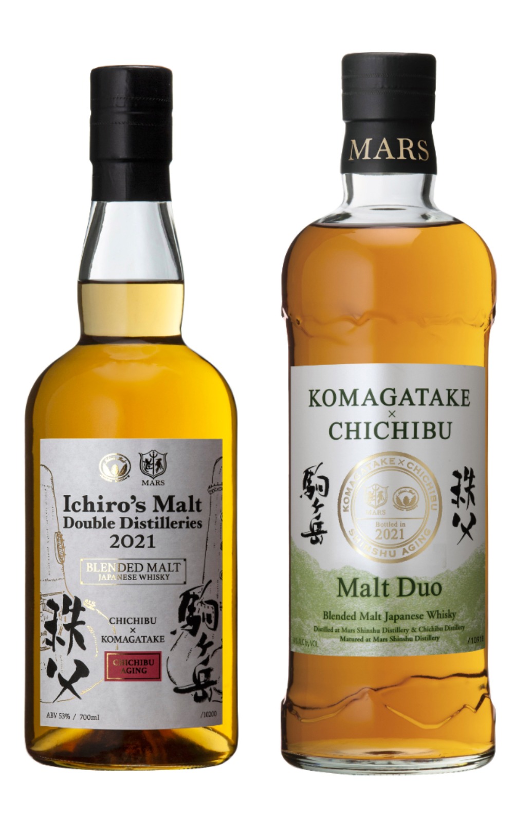 Hot on the heels of the release of Japan’s first-ever blended malt whiskies made via stock swapping, two big names in Japanese whisky have announced their own bottles: Ichiro’s Malt Double Distilleries Chichibu x Komagatake 2021 and Mars Whisky Malt Duo Komagatake x Chichibu 2021.