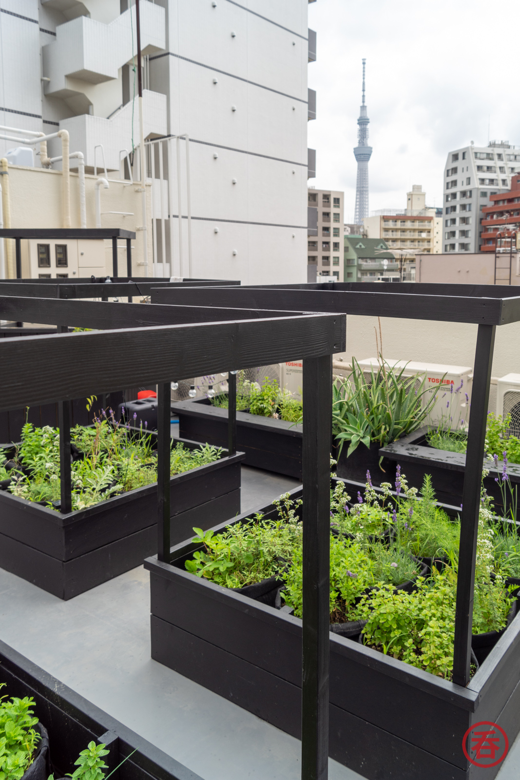 It’s not exactly huge–I mean, come on, we’re in downtown Tokyo–but the roof of the building has a small garden where some of the botanicals for the gins and ingredients for the bar food are grown. The company says the roof terrace here can host BBQs and small functions, but I’m guessing this space would be quite tight with more than say a dozen people.
