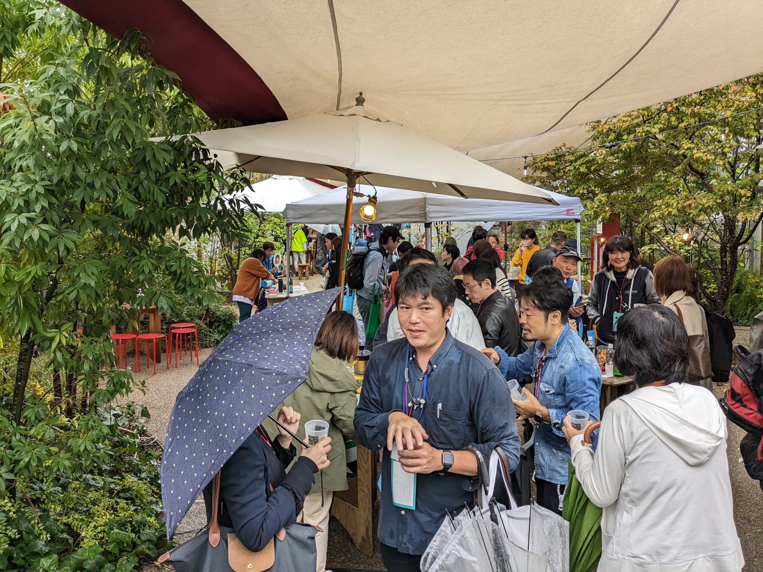 Shochu Enkai is a very different kind of shochu event. This year’s was held on a rainy October 9, 2023, but plenty of shochu fans turned up in a show of force anyway. At the invitation of all-around drinks writer/influencer Marico Kojima, I had the opportunity to attend for the first time. The Shochu Enkai’s novel approach to a tasting event turns it into an exceptionally social one (“enkai” is Japanese for a party, usually where participants share food and drink).